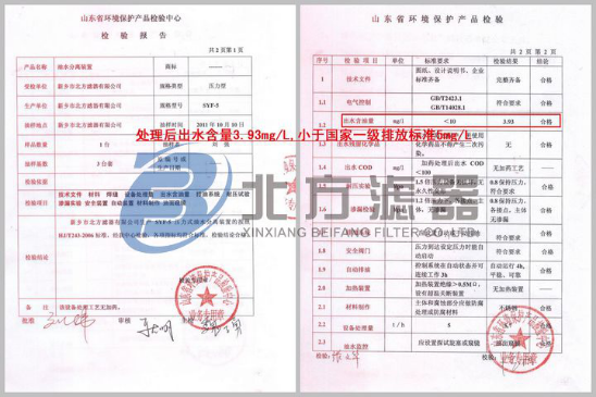 油水分離機 SYF-1B型通過了新鄉環境監測站、洛陽市環境監測站、山東省環境保護產品檢驗中心等多個監測站檢測,并獲得了由中環協(北京)認證中心頒布的"中國環境保護產品認證證書"(CEP)。